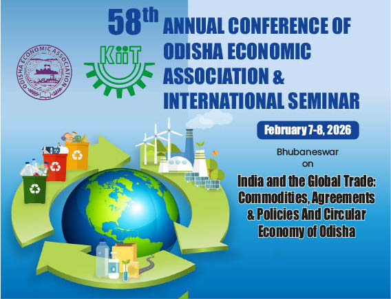 The 58th Annual Conference of the Odisha Economic Association (OEA) will be held at the School of Economics and Commerce (KSEC), KIIT Deemed to be University, Bhubaneswar on February 7-8, 2026 (Friday-Saturday). TheOEA and the KSEC, KIIT University, are jointly organising the conferenceon twobroad themes: (A) India and the Global Trade: Commodities, Agreements,and Policies, and (B) Circular Economy of Odisha.