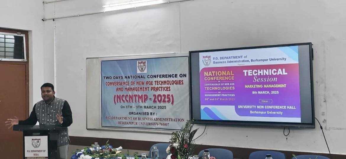 Dr. Smruti Ranjan Das, Associate Dean (IE), was an invited speaker at the National Seminar organized by the Department of Business Administration, Berhampur University, Odisha. He delivered an insightful talk on the “Convergence of New Age Technologies and Management Practices”, exploring the future of business and innovation.